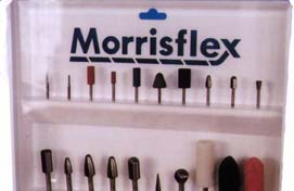 Morrisflex grinding and finishing tools have been developed through years of experience to meet the most stringent demands of modern surface machining. Our comprehensive range of abrasive mounted points is manufactured to a consistent specification of grit, grade and bond calculated to give optimum performance. Morrisflex can provide an abrasive mounted point for every application. As part of our special service we will manufacture points to fit your individual needs. Morrisflex Tungsten Carbide Rotary Burrs are manufactured in a wide range of standard and miniature Shapes. New and reconditioned burrs are machine ground to a precise geometrical specification, which gives the most effective combination of helix, rake angle and number of teeth. |